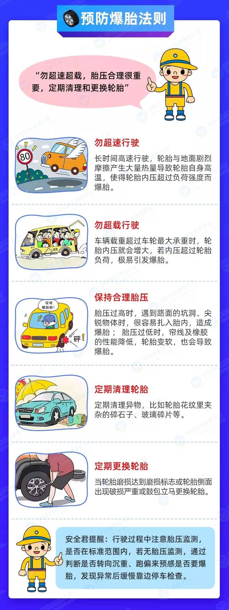 事实上,避免事故的发生最好的方式是预防!下面的预防爆胎法则,小编希望所有司机朋友们都能践行。